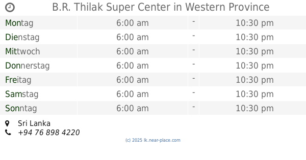 | Sonntag | 24 stunden geöffnet | |||||