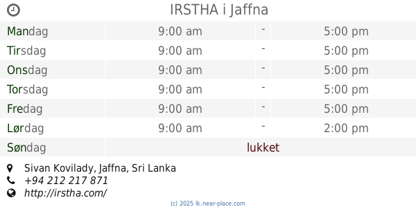 kontakter telefon: +94 212 222 542