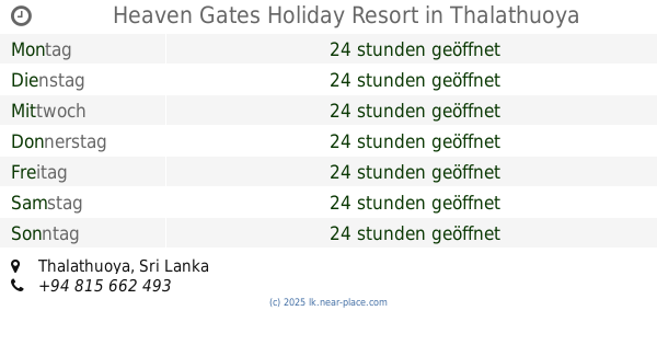 | Donnerstag | 24 stunden geöffnet | |||||