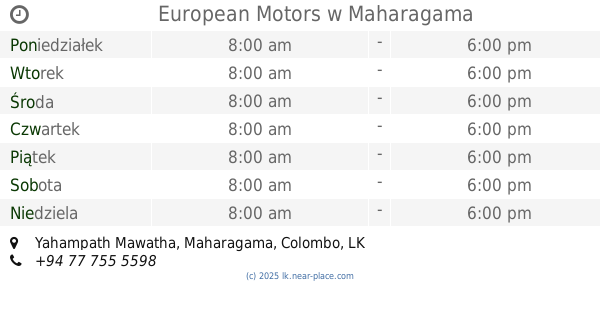 kontakt telefon: +94 112 843 170