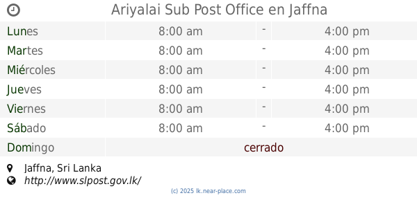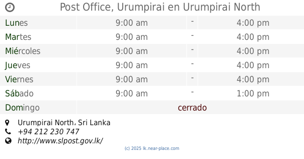 sitio web: www.slpost.gov.lk