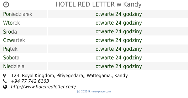 | Środa | otwarte 24 godziny | |||||