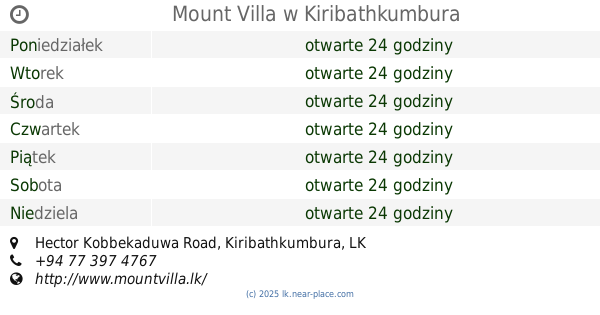 | Poniedziałek | otwarte 24 godziny | |||||