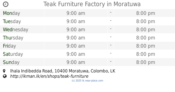 ::worst ever furniture shop/workshop actually this is not a shop or factory. this is just a 3rd class work shop. they told pay 50% advance and they will delivry the furniture in 14 days. but 2 months passed, no responses.even for calls. as i know once they got the order from customers they order the same from some other place for cheap price and give.