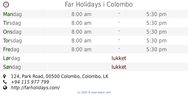Far Holidays, 124 Park Road, Colombo